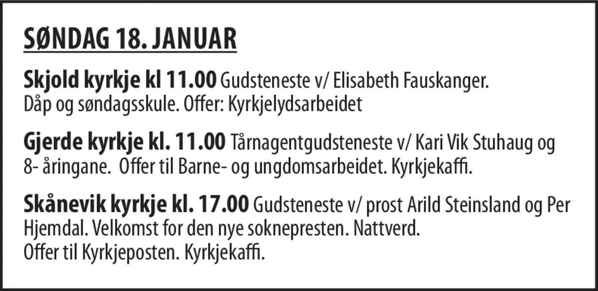 v/Elisabeth Fauskanger. Dåp og søndagsskule. Offer: Kirkelydsarbeidet